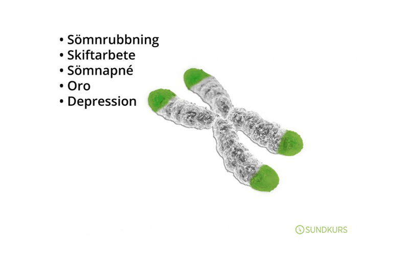 Många tvärsnittstudier visar att sömnrubbning, skiftarbete, sömnapné, oro och depression är förknippat med kortare telomerer.
